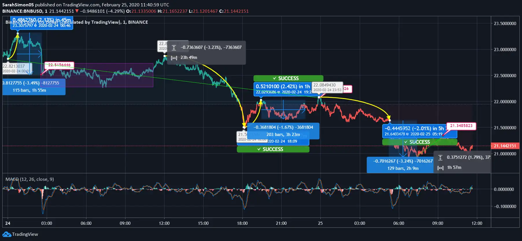 With a slight plunge, the coin price returned to $22.08. The intraday movement in the coin reflected a 3.23% fall in the price. Today, Binance Coin began the day with fall, and the counters touched $21.6 at $05:19 UTC. Later, the price touched $20.3 but returned to $21.34. The current price of BNB Coin is $21.14.