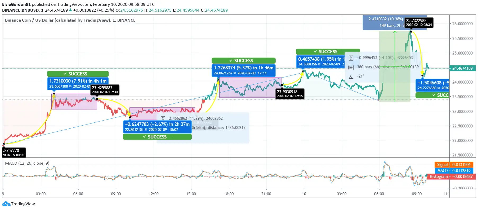 Binance Coin was trading at $22.87 on February 09. The escalation brought the price to $23.60 by 7.91% in the next 4 hours. Then, the currency locked itself at the same level till 07:30 UTC. From this level, the BNB price dropped to $22.80 by a marginal fall of 2.67%. Later, Binance Coin kept the price range intact for a while, and then, it escalated once again to $24.06 by 5.37% at 17:11 UTC. After this hike, the currency again found hovering at the same level and this time around $23.90. The closing hour took the price of Binance Coin to $24.36 by 1.95%. The intraday movement reflected 11.29% progression.