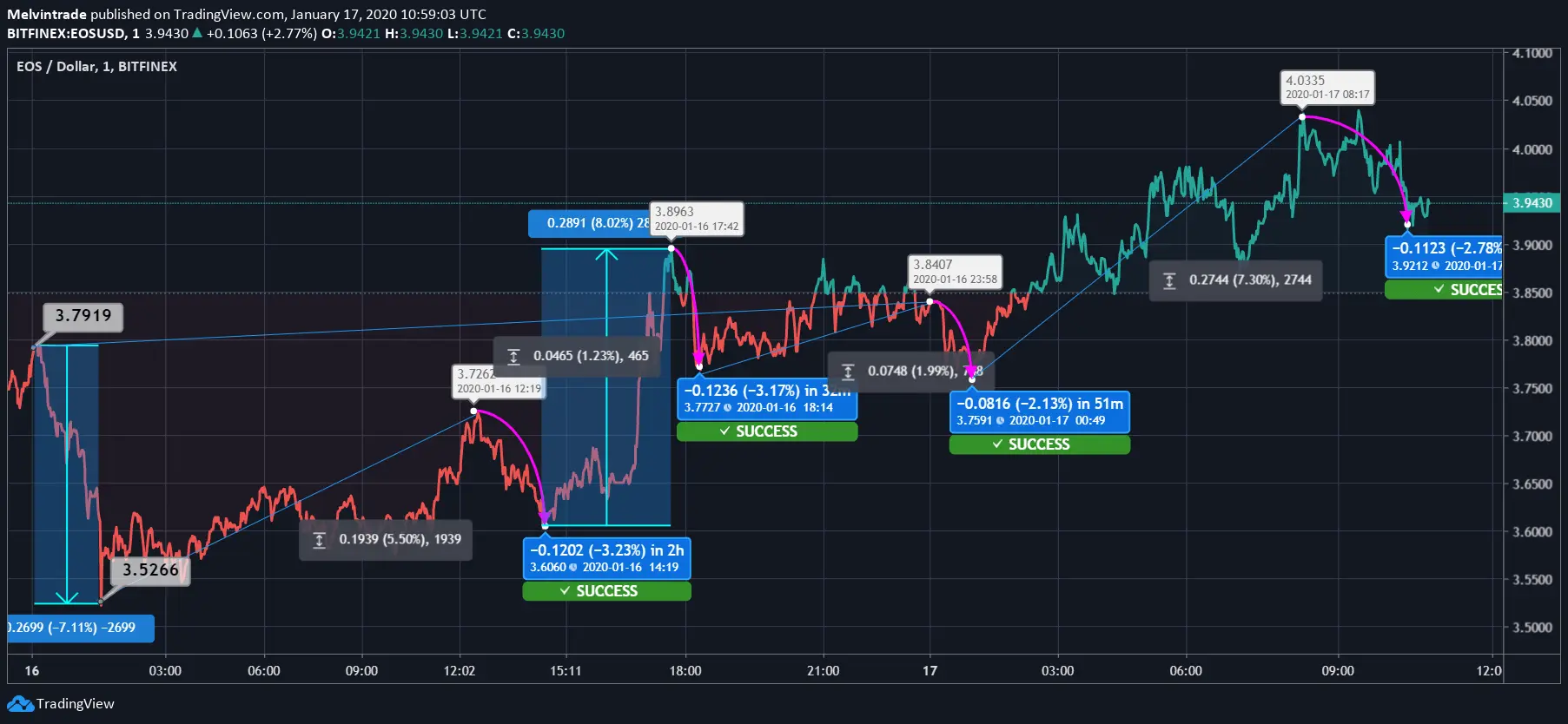 The currency is reflecting bullish movement over the last 24 hours. Yesterday, EOS started dealing at $3.79. The price dropped to $3.52 by 7.11%, and then it recovered to $3.72 by 5.50% hike. The currency dropped to $3.60 by 3.23% and then, almost in the next three hours, the coin price escalated to $3.89 by 8.02%. There was a slight fall marked in the price.