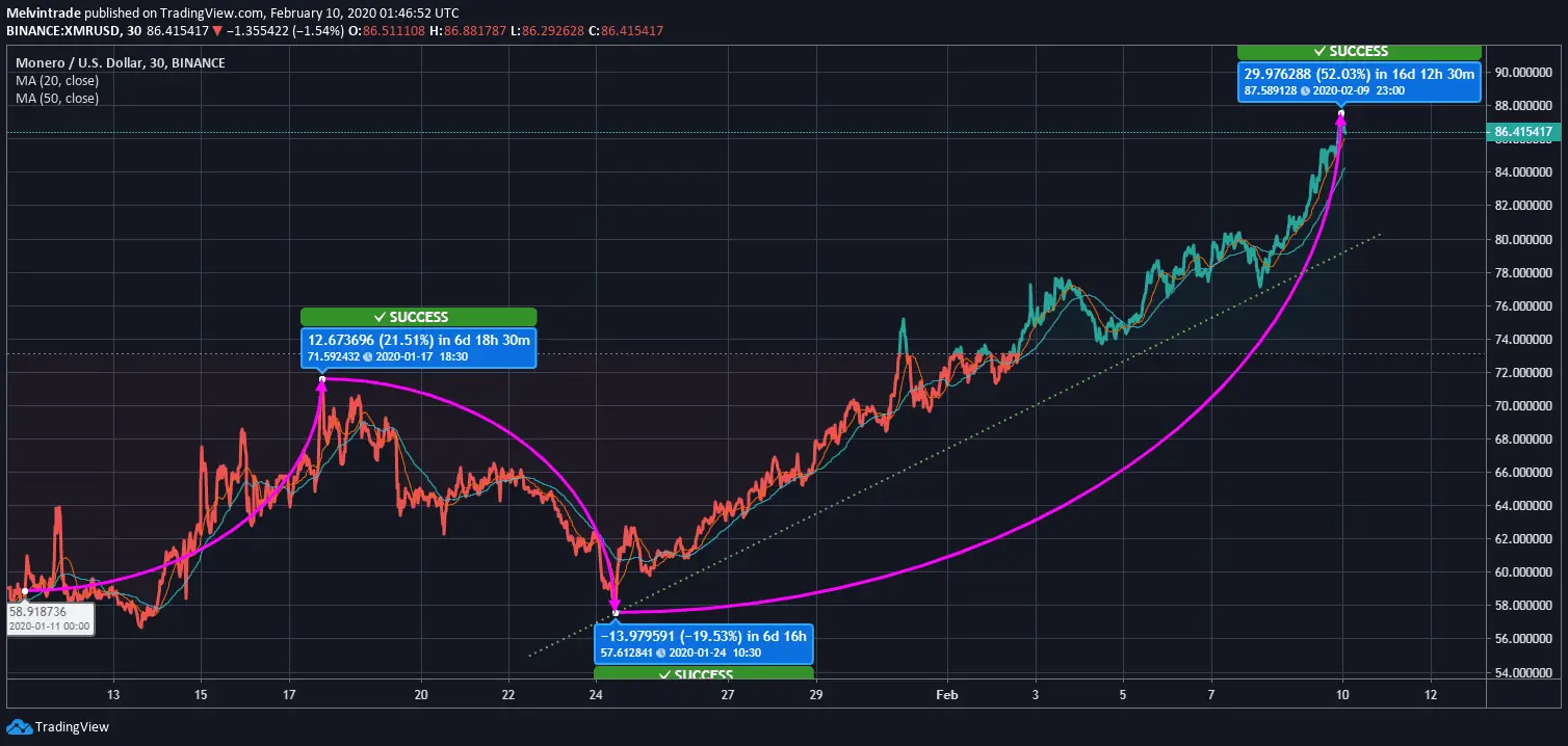 After registering the lowest around $57.61, Monero started to trade with a steady upside momentum, and it added almost $30 to the value and pushed the price of Monero to $87.58. XMR coin has already breached previous resistance levels of $81 & $83.