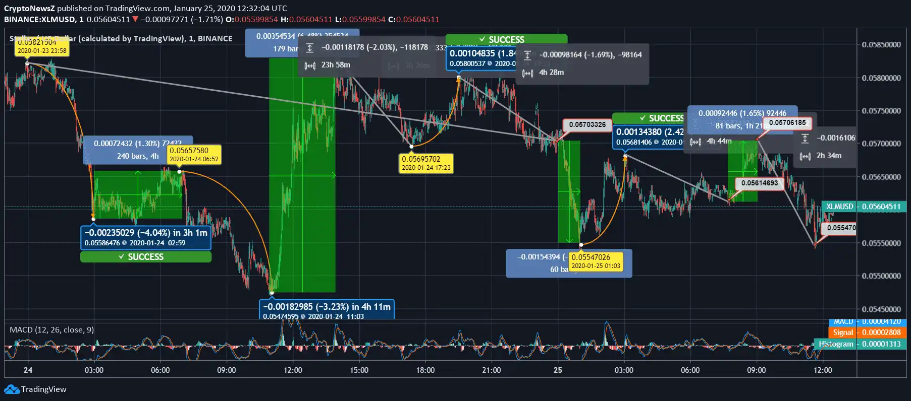 Stellar was at $0.0582 during yesterday’s opening hour. The coin drifted to $0.0558 by 4.04% in 3 hours’ time. The price booked a slight recovery of 1.30% in 4 hours and touched $0.0565. Further, the coin dropped to $0.0547 by 3.23%. The currency escalated to $0.0588 by 6.48%. The coin slipped and touched $0.0569 and again improved to $0.0580. Then again fell to $0.0570 and closed the day. The intraday movement of the coin reflected a 2.03% loss in the price. Today, Stellar started with a fall. The price was at $0.0554 at 01:03 UTC. The price jumped to $0.0568 by 2.42%. The coin slipped to $0.0561 but later improved to $0.0570. Recently, the price slipped to $0.0554. The current price of Stellar is $0.0560.